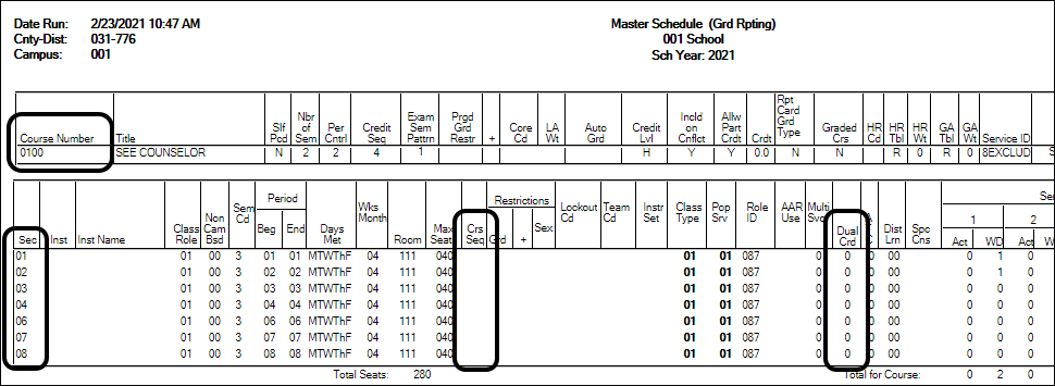 • Grade Reporting > Maintenance > Master Schedule > Campus Schedule > Section