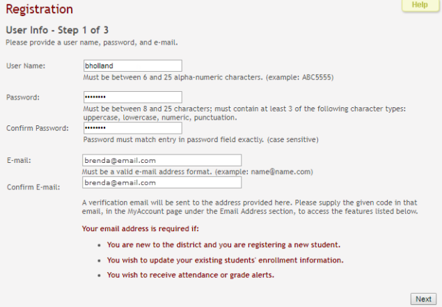 Create a username to identify you in ASCENDER ParentPortal with a combination of letters from your first and last name.