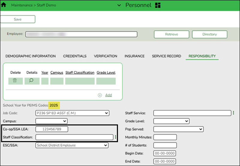 ❏ Modified the program to facilitate changes made to the TSDS Staff > StaffEducationOrganizationAssignmentAssociation domain for records with a 2025 school year or greater. The following changes were made to the Staff Responsibilities section: