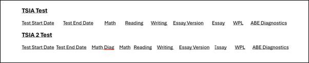 • TSIA 2 Math - a minimum score of 950 or less than 950 and a diagnostic level 6