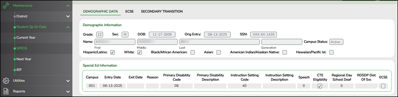 Registration > Utilities > Transfer > Student Current Year