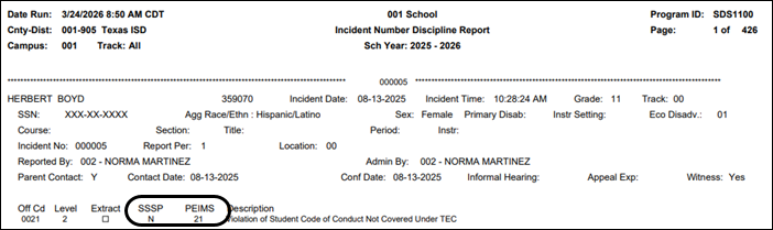 ❏ Updated the report to add an SSSP column and to capitalize the PEIMS column header.