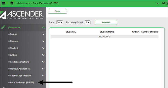 Attendance > Maintenance > Rural Pathways (R-PEP)