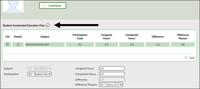❏ Modified the page to add a checkbox for Student Accelerated Education Plan to indicate students who do not meet satisfactory performance on assessments administered for two years in a row.
