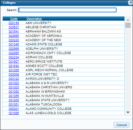 The ellipsis icon is displayed next to a field and remains on the page at all times. You do not have to tab into the field for it to be displayed. Click to display a pop-up window with data that corresponds to the field.