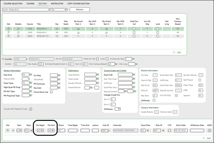 NOTE: If the student has a graduation plan, the fields must be updated on Graduation Plan > Maintenance > Student > Individual Maintenance > PGP instead (as described previously under Graduation Plan).