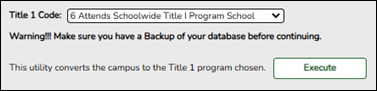 1. Go to Registration > Utilities > Title 1 Code Conversion.
